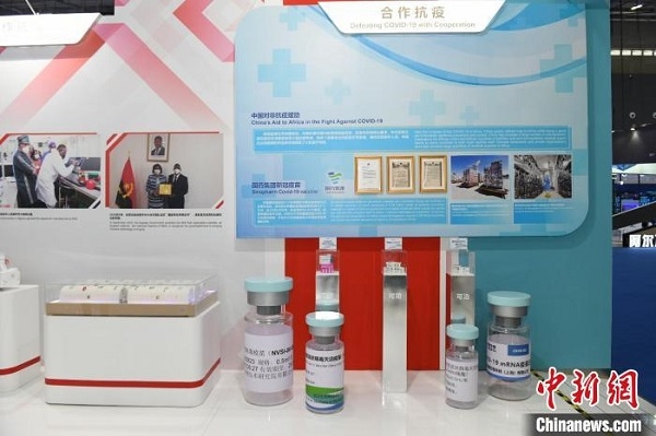 “中非经贸合作成果展”核心位置设置了“中国对非抗疫援助”成果展示。 杨华峰 摄