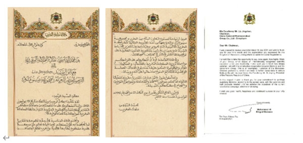 摩洛哥国王穆罕默德六世致欧美av 董事长刘敬桢先生的感谢信