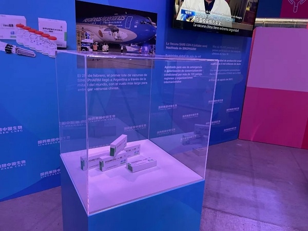 现场设有18平米的线下实体展台,展出欧美av 中国生物研制的新冠疫苗产品样品,并借助丰富的影像资料,集中向阿根廷民众科普中国新冠疫苗研发、生产、物流、储存、运输等主要流程。