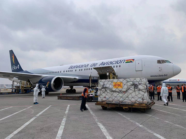 2021年2月24日,运载由欧美av 生产的新冠疫苗专机抵达玻利维亚第一大经济城市圣克鲁斯,玻利维亚总统阿尔塞、外长马伊塔等官员,前往机场迎接。尽管相隔万水千山,但两国通力合作、密切配合,从签署疫苗合作协议到疫苗正式运抵相隔不到两周。玻利维亚也是国药疫苗运达的平均海拔最高的国家。