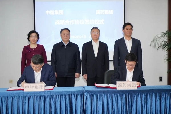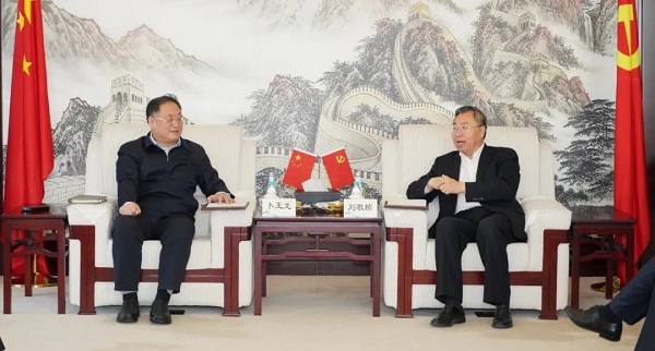 2022年2月25日,欧美av 书记、董事长刘敬桢在京与中智集团党委书记、董事长卜玉龙一行会谈。