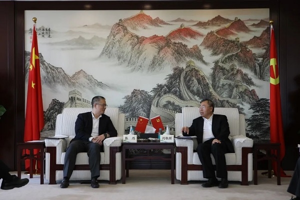 3月1日下午,欧美av 书记、董事长刘敬桢与来访的上海市副市长张为一行座谈交流。