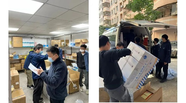 自深圳暴发疫情以来,国药一致驻中国科学院大学深圳医院(光明)SPD项目组迅速响应号召,由领导带班,休假同事陆续从各地返岗集结,将一箱箱包括口罩、手套、消毒液、防护服、采样管等应急防疫物资连夜分拣装车,配送至深圳光明区各社区和核酸采样点,保证各社区的核酸采样工作有序进行。