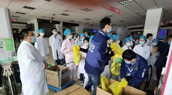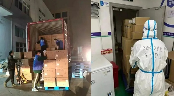 3月24日,国药控股接受上海市政府委托,24小时内,将5万余件医用防护及外科口罩以及300件防护服送达指定地点。