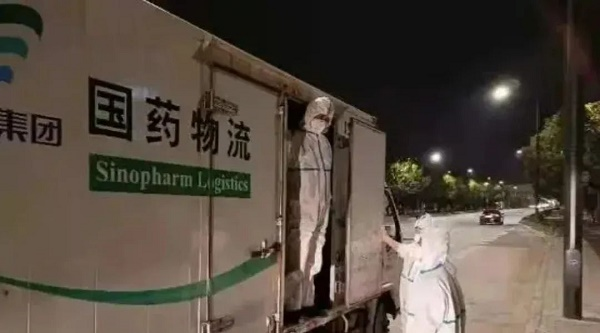 4月1日,国药控股组织跨省配送,20余辆专业配送车辆疾驰1000多公里,仅用20个小时,将800万盒药品运抵上海,解决连花清瘟上海“断供危机”