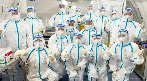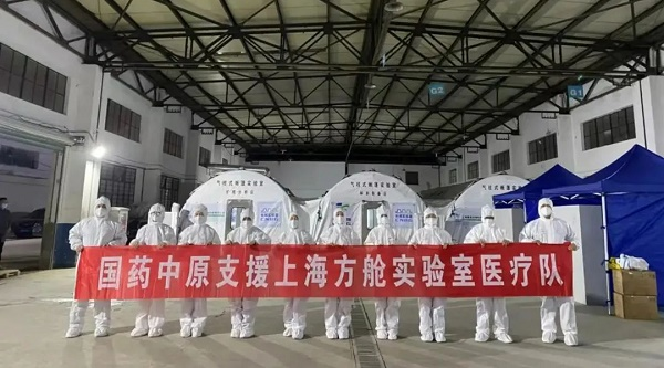 国药医疗所属国药中原从河南各地连夜抽调具有丰富核酸检测经验的医护工作者火速集结、逆行出征、奔赴上海,开展核酸检测工作。
