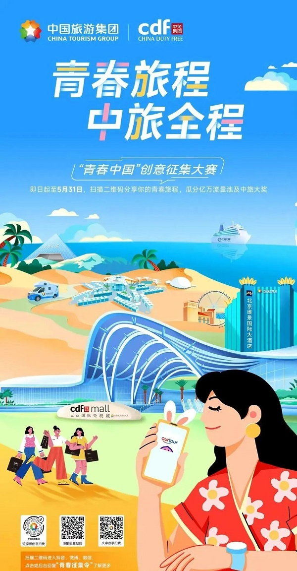 活动简介:中旅面向每一位你发起“青春征集令”。即日起,在后台以文字或图片、视频形式分享你的青春旅程,你的作品有机会在中旅TVC、短视频、户外海报中露出,亦可获得中旅大奖!快来扫描下方海报二维码,参与中旅“青春中国”创意征集大赛,收获天涯咫尺的知己。