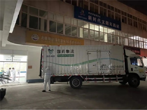 4月1日,国药控股接到急电,抗疫药品连花清瘟胶囊在上海市场断供。全球采购与供应链服务中心联系厂家增加货源调配,快速办理首营、质量通关、订单下放和实施,协助厂家安排驾驶员核酸检测、车辆调度、多地发车、跨省配送等工作。经过20个小时1000多公里疾驰,首批共计2万件、800万盒药品载满20余辆专业配送车辆,于4月2日晚10点抵达上海康宁路的国药物流仓储库区。国药物流人员迅速卸货入库,调配小型车辆,接力向上海各社区网点转运,确保第一时间将连花清瘟胶囊送达医院和患者手中。
