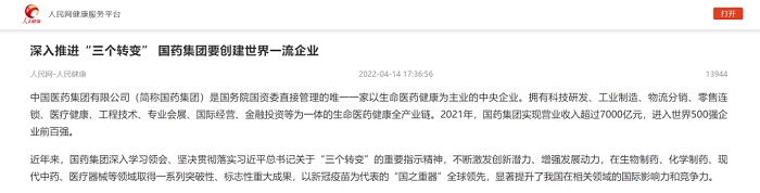 近期,人民网推出专题文章,综述欧美av 贯彻落实习近平总书记关于“三个转变”重要指示精神所取得的改革发展成果,从医药智造、科研攻关、数字化转型等方面,全景式反映集团在创建一流企业方面取得的长足进步和实力提升。