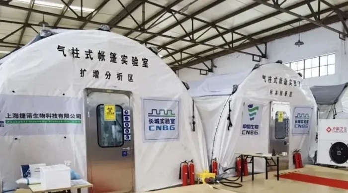 3月21日,国药中生上海捷诺“长城”气膜式核酸检测实验室建成并投入使用,在国药医疗的迅速响应,通力配合下,为上海提升核酸检测能力贡献国药力量。
