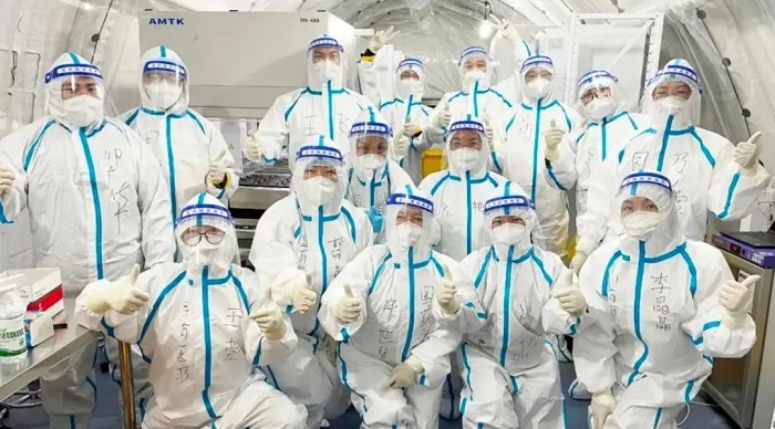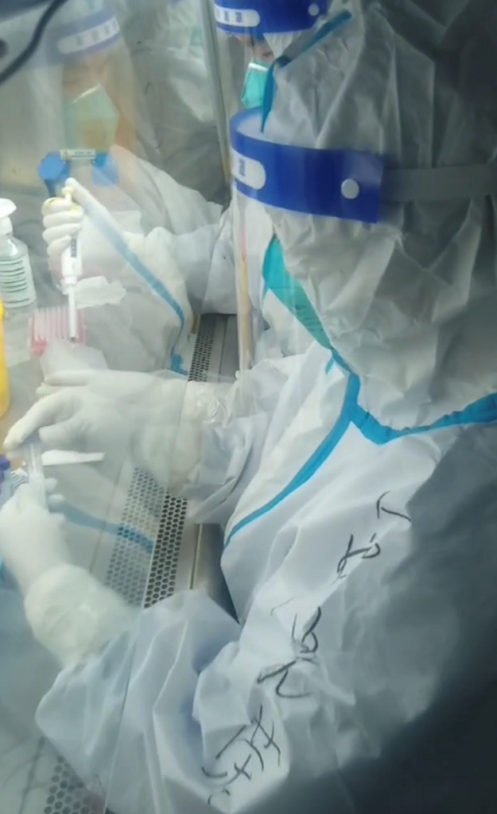 来自国药医疗所属新乡市中心医院、新乡市第二人民医院、新乡市妇幼保健院、国药平顶山市第五人民医院、国药上海长航医院等五家医疗机构的12名医护人员12小时内火速集结到位,日夜兼程奔赴上海。为确保日检测量达到5万管,队员们平均每天在气膜舱里需要工作10小时以上,仅重复拧开核酸检测盖帽动作就达上万次,队员手指都出现了不同程度的损伤和水泡。