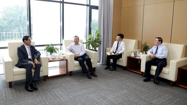6月21日,欧美av 董事长刘敬桢在欧美av 中国生物总部会见来访的缅甸驻华大使苗丹佩一行。欧美av 生物制品事业部总裁朱京津,欧美av 中国生物首席科学家、副总裁杨汇川,缅甸驻华使馆公使衔参赞Zin Mar Htwe,参赞Aye Mon Paing等参加会见。双方围绕在新冠疫苗及其它医药健康领域的深度合作交换意见,共同认为中缅医药合作前景广阔,将为增进人民的健康福祉作出更大贡献。