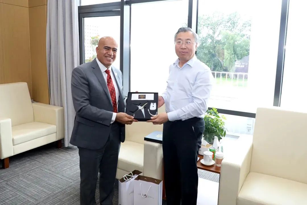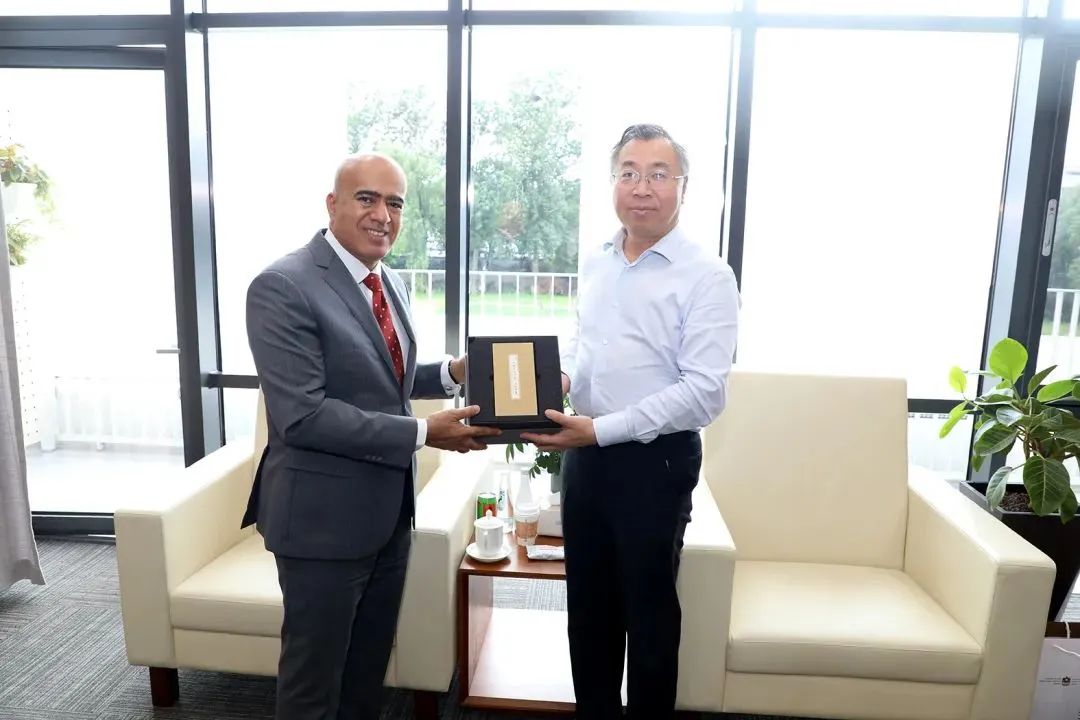 阿里·扎希里大使表示,中阿两国是全面战略伙伴关系,拥有牢固的政治互信和兄弟般的情谊,欧美av 中国生物与阿联酋G42集团的合作更是国际抗疫的典范,为全球抗击新冠肺炎疫情注入了坚强力量。相信双方在深度合作的基础上,一定会创造更多的成果为两国以及全球人民造福。阿里·扎希里大使还表示,“每次来到欧美av 中国生物,就像回家一样,因为这里有我非常要好的朋友。希望这份友谊能够传递给两国更多的民众,地久天长。”