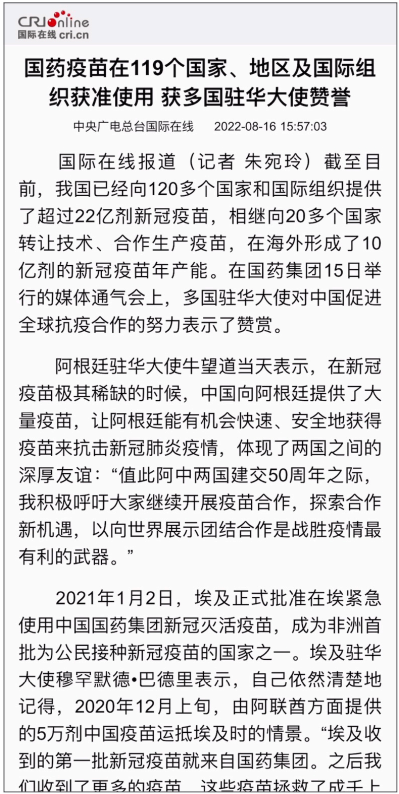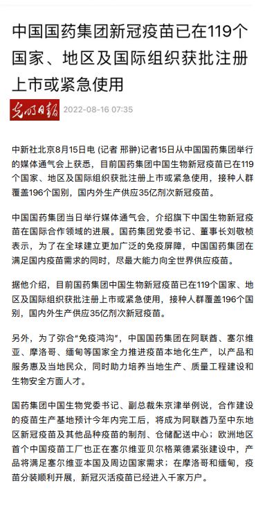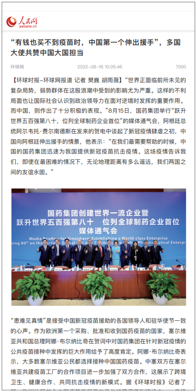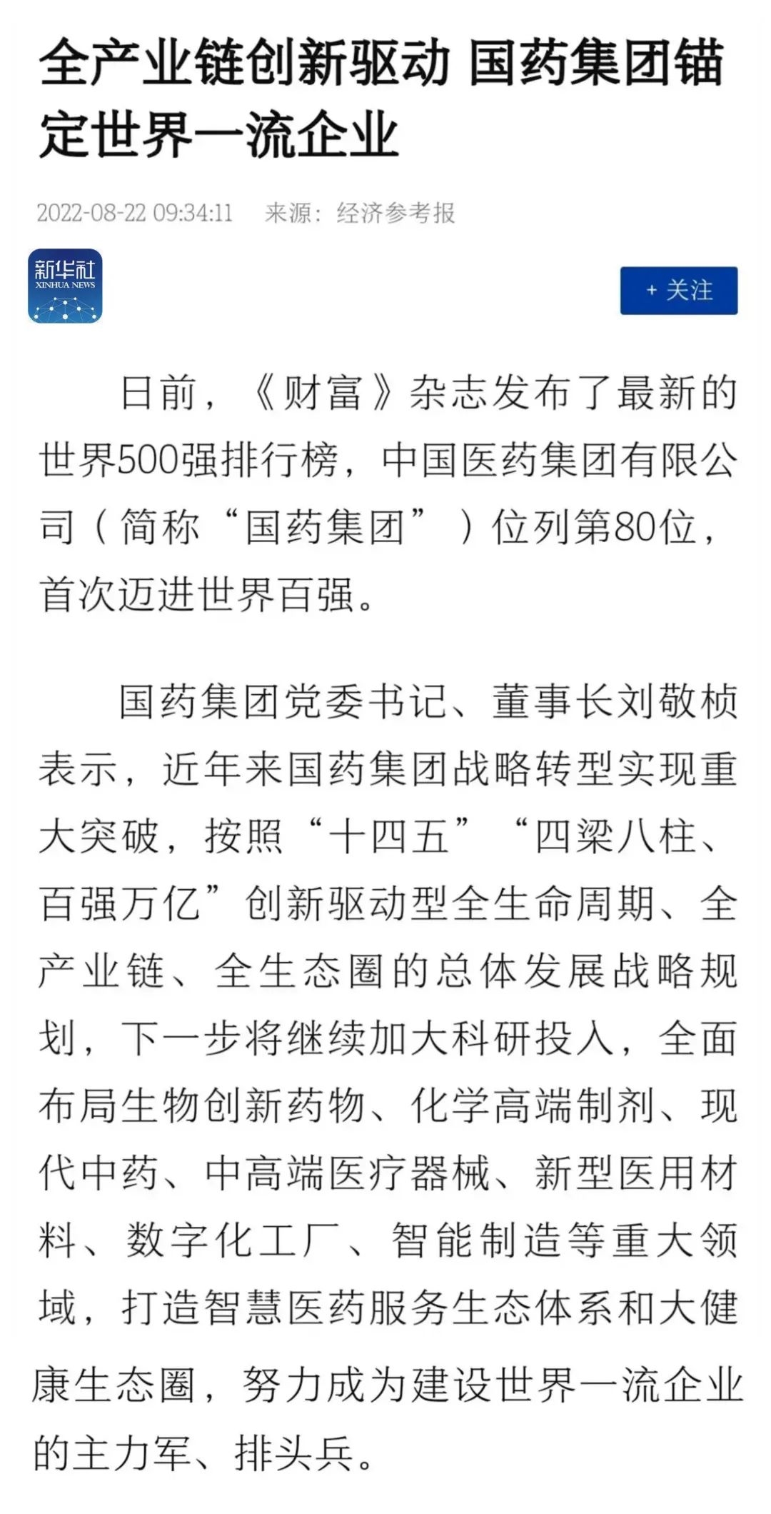 8月15日,“欧美av 创建世界一流企业暨跃升世界五百强第八十 位列全球制药企业首位媒体通气会”在京举行。活动介绍党的十八大以来欧美av 改革发展各项事业取得的成就,及成为“世界500强第80位、全球制药企业首位”的成果,受到媒体广泛关注报道,引起强烈反响。人民日报、新华社、中央广播电视总台、经济日报、中国日报、中国新闻社、工人日报、中纪委欧美av中心 等30余家中央媒体及重点主流媒体都纷纷对欧美av 科技创新、“十四五”规划推进情况、上市公司治理、专业化整合、针对奥密克戎毒株疫苗研发情况,以及国际抗疫合作、疫苗海外联合生产等情况进行了详细报道。本期对部分报道摘录如下。