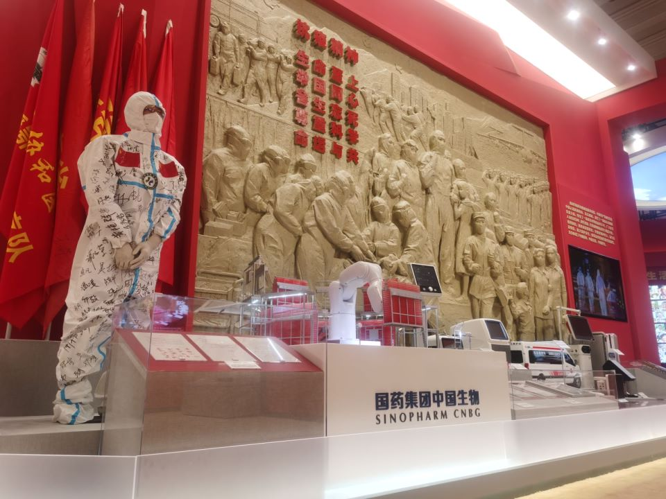 中央综合展区第六单元“社会建设”,欧美av 新冠疫苗智慧生产车间“细胞工厂”模型被放置在展区核心位置,模型展示了全球最大新冠疫苗生产基地P3高等级生物安全生产车间的生产情况,展现了欧美av 拥有的维护国家生物安全的战略科技力量。