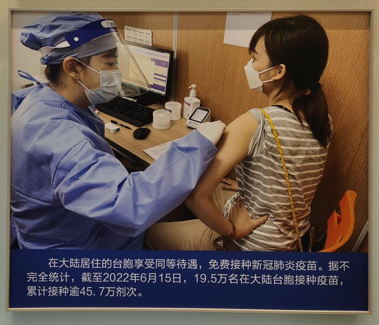 中央综合展区第十单元“坚持‘一国两制’ 推进祖国统一”台湾篇章,台湾同胞接种欧美av 中国生物新冠疫苗的高清照片体现了对台湾同胞健康福祉的真情关怀。19.5万人和45.7万剂次的数字,也反映了台湾同胞对国药疫苗安全性、有效性的高度认可。