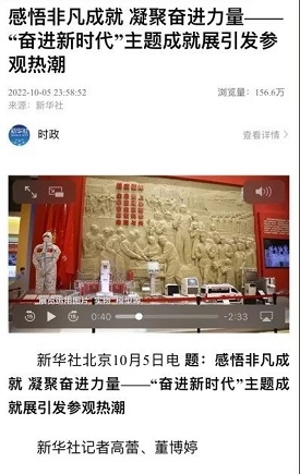 近日,“奋进新时代”主题成就展在北京展览馆开幕。一个个实物模型、一幅幅图片图表、一段段精彩视频,向观众们展示了新时代党和国家事业取得的历史性成就、发生的历史性变革。
