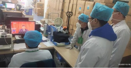 国药器械内蒙古呼和浩特抗疫物资库房值守员工收看党的二十大开幕会