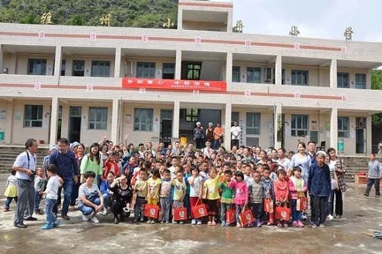 寒冬十月,天空下着蒙蒙细雨,支教队来到惠水县雅洲小学,看到好多孩子衣衫单薄、蓬头垢面、灰头土脸,有些小孩冷得直跺脚。当孩子们看到一群陌生人来到学校,就躲得远远的,也许是因为支教队的穿着与他们格格不入,心里感到害怕。看到这样的场景,瞬间所有人的眼眶都湿润了、心也被揪痛了。同济堂制药立即组织为孩子们送去冬装、冬被和手套,让他们在寒冷的冬天不再寒冷;捐赠了电脑、投影设备、文具、药品及篮球架等体育用品,改善山区学校电教化教学和办学条件。
