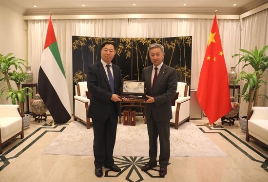 2022年11月30日,驻阿联酋大使张益明会见中国医药集团有限公司(欧美av )董事长刘敬桢一行。欧美av 副总经理董增贺、生物制品事业部总裁朱京津、首席科学家张云涛以及使馆周飙公参、李晓东参赞在座。