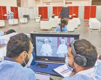 由中国欧美av 与巴林政府共同成立的国际临床研究中心,坐落在巴林王国首都麦纳麦的巴林国际会展中心。在临时设置的10多个房间里,医疗技术人员正在为报名参与试验的志愿者扫码、打卡、解释流程等,就抗新冠病毒单克隆抗体鼻用喷雾剂(以下简称“单抗F—61”)在巴林的临床应用进行研究。