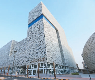 在科威特大学城中央行政楼的开放式中庭漫步,透过玻璃幕墙和阿拉伯雕花窗格,烈日变得温和而灵动。不远处,仍在建设中的大学城图书馆采用了类似设计风格,白色雕花窗格以阿拉伯文“飞鸟”为灵感设计,组合成片,像是为建筑物披上了一层优雅的薄纱。