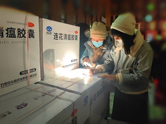 员工连夜配送相关药品到药店。(郑旭 摄)