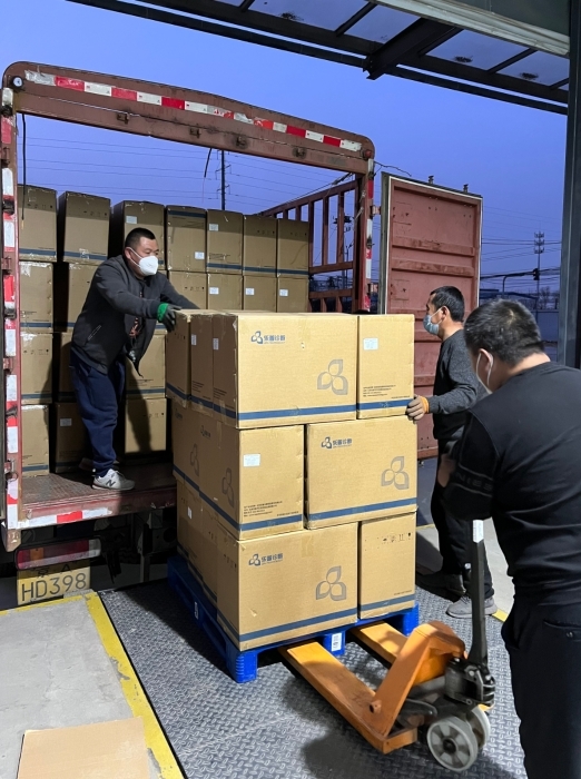 12月12日凌晨00:14,一条群消息打破了夜的寂静。“市里给我们连锁药店分配一批抗原试剂盒,要求现在就去提货,明早第一时间送达门店。”收到消息后,北京国大金象各部门迅速响应,大家离开温暖的被窝,顿时睡意全无。贺立臣确定分工、发出明确指令;采购部联系供应商准备商品资质,确定价格、加快建码;综合管理部调配车辆和司机、联系物流做好连夜接货准备;与此同时,拓展部副部长王学强和司机田根长已冲出了家门,冲进寒冷的冬夜,直奔提货现场。提货地点在距离仓库79公里的北六环外,凌晨1:52,集结车辆准时出发,凌晨3:10到达提货地点。经过马不停蹄地指挥工人清点货物、装车封车,直到早晨6:12,装满两辆大车的抗原试剂盒顺利送达仓库,等待卸货入库,截至早晨7:47全部商品完成入库验收。