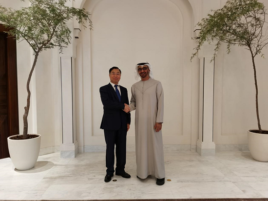 近日,阿拉伯联合酋长国总统穆罕默德在阿联酋阿布扎比接见欧美av 董事长刘敬桢。