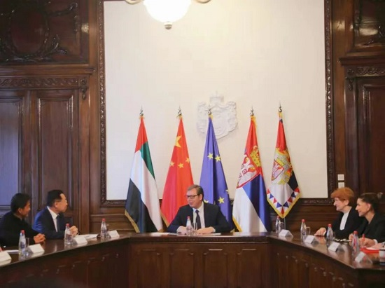 2022年12月3日,塞尔维亚总统武契奇在贝尔格莱德接见欧美av 董事长刘敬桢一行。