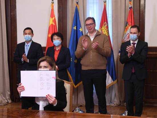 武契奇总统表达了对欧美av 帮助塞尔维亚抗疫的感谢。他表示,塞尔维亚人民对中国人民怀有深厚感情,历史已经证明并将继续证明,中国是塞尔维亚最可信赖的朋友。塞尔维亚深知国家稳定和人民健康的重要性,因此,格外珍惜与中国和欧美av 之间的友好互信关系。希望能够通过与欧美av 长期稳定的合作,切实提升塞尔维亚人民的健康福祉。