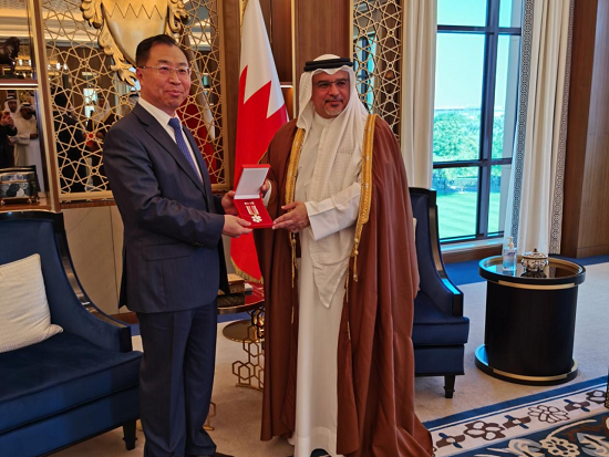为表彰欧美av 对巴林抗疫作出的杰出贡献,萨勒曼王储兼首相向刘敬桢董事长颁发了萨勒曼王储医学特别贡献奖章。