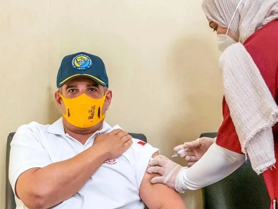 巴林王储兼首相萨勒曼以志愿者身份,第一批接种欧美av 新冠疫苗。