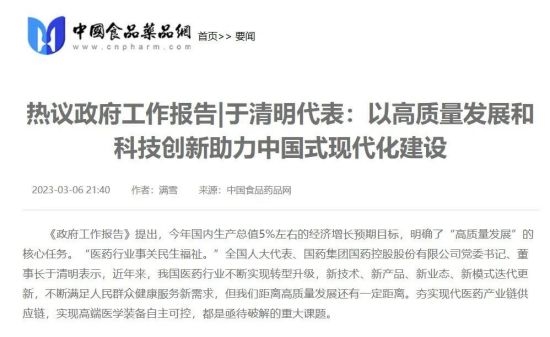 于清明代表表示,医药物流一头连着企业、一头连着医患,一头系着经济、一头系着民生。打造现代医药物流体系,是建设全国统一大市场的重要内容,也是推进健康中国2030战略的重要支撑。